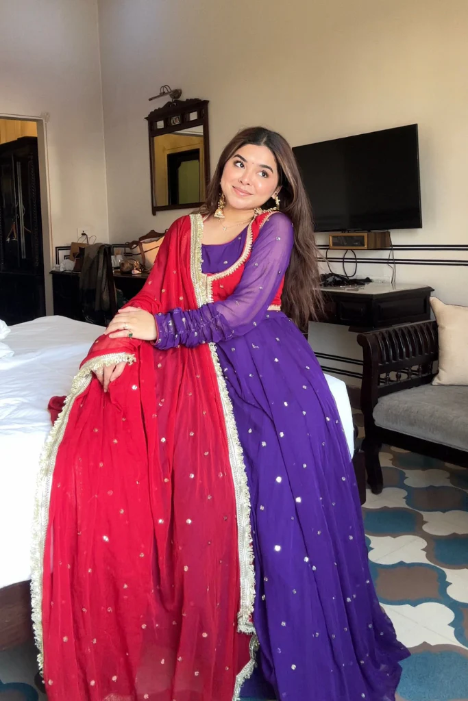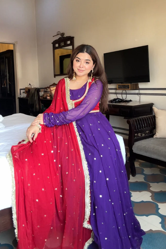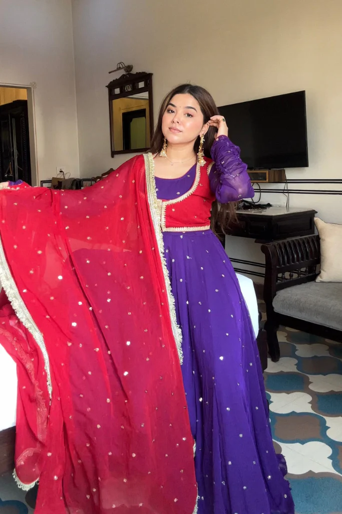 Purple Faux Georgette Sequence Lace Work Salwar Suit