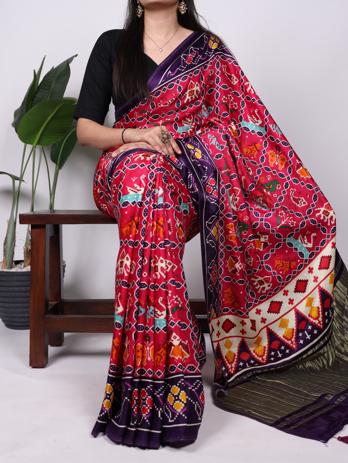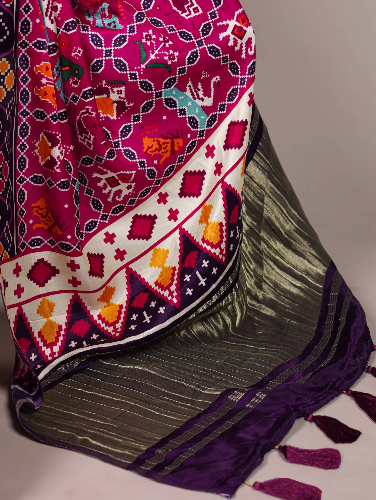 Purple Gaji Silk Patola Print Lagadi Patta Saree