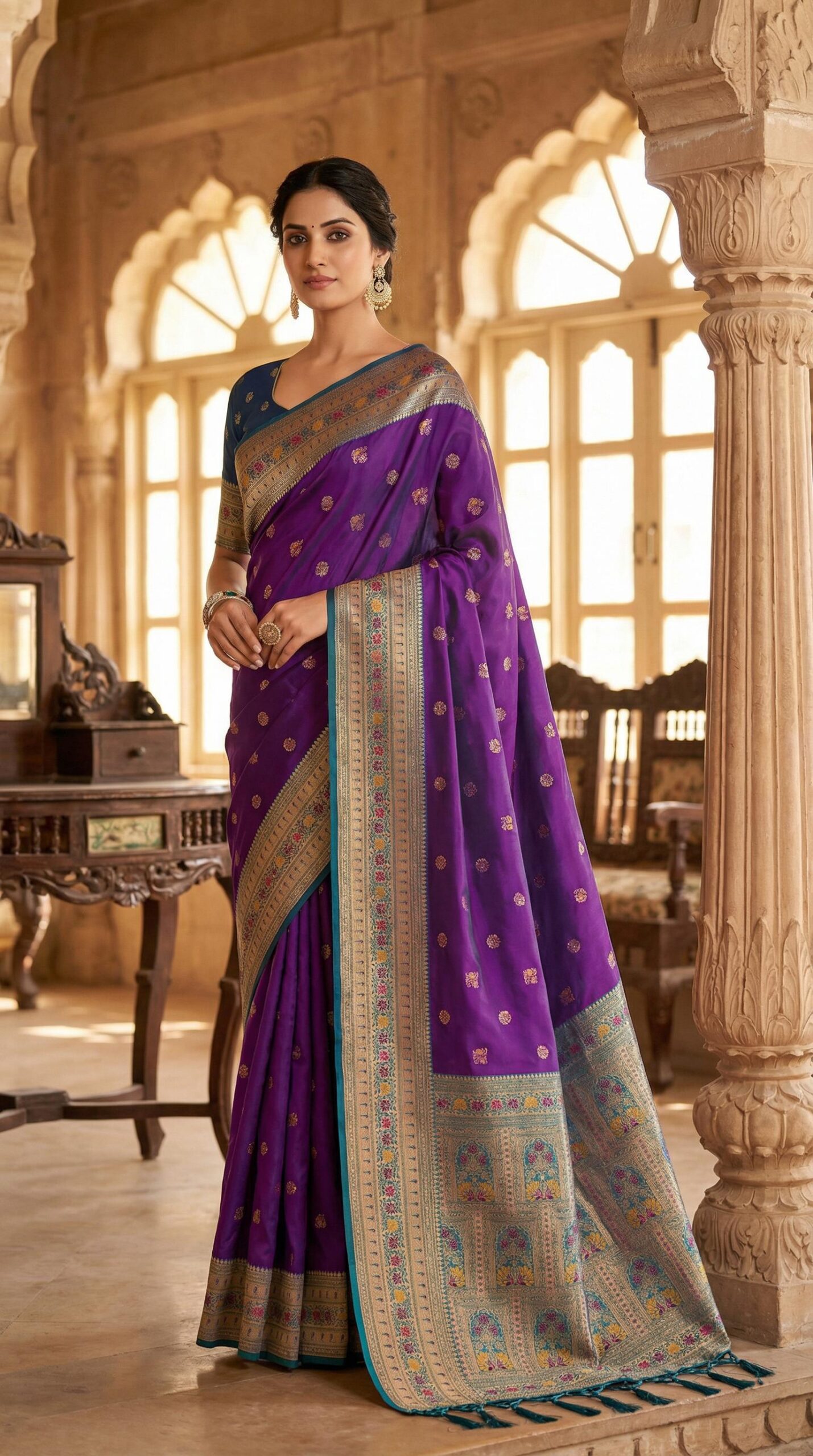 1. Cotton silk Indian saree ka shine light hai, design standard; office festivals ya simple pooja ke liye chalta hai, nothing very unique.