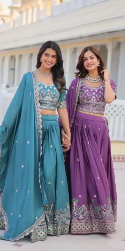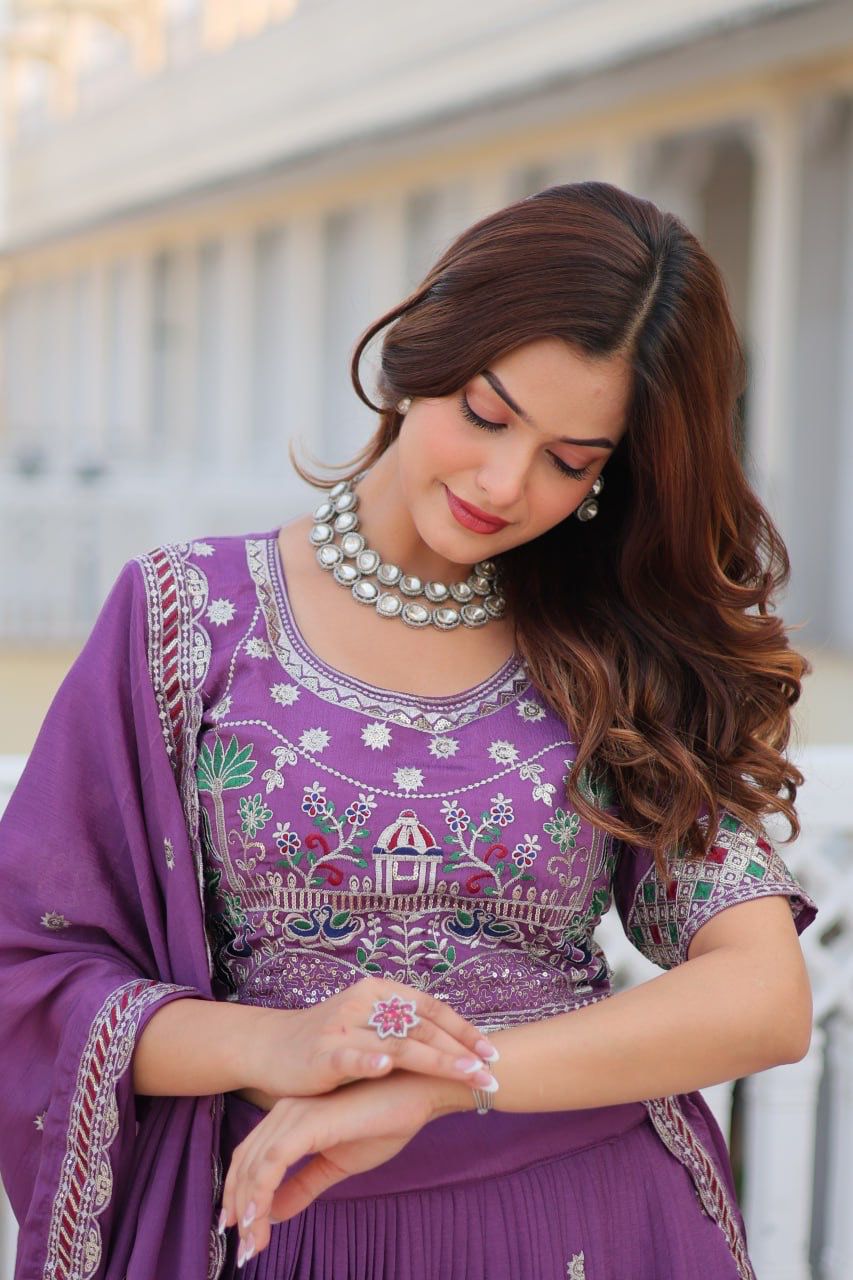 Purple Pure Chinon Embroidery Work Lehenga Choli
