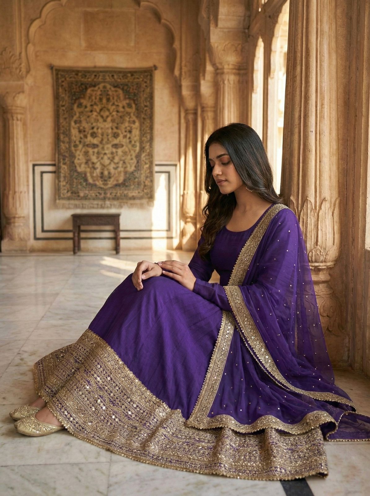 ZSR 3152 Purple Color Roman silk Gown with Embroidery Work & Lace Work. Grab it for ₹2599. Delivery 4-6 Working Days. Shop now. | Bollywood Gowns, Creative Gowns, Designer Gowns, Embroidered Gowns, Gowns, Party Wear Gowns
