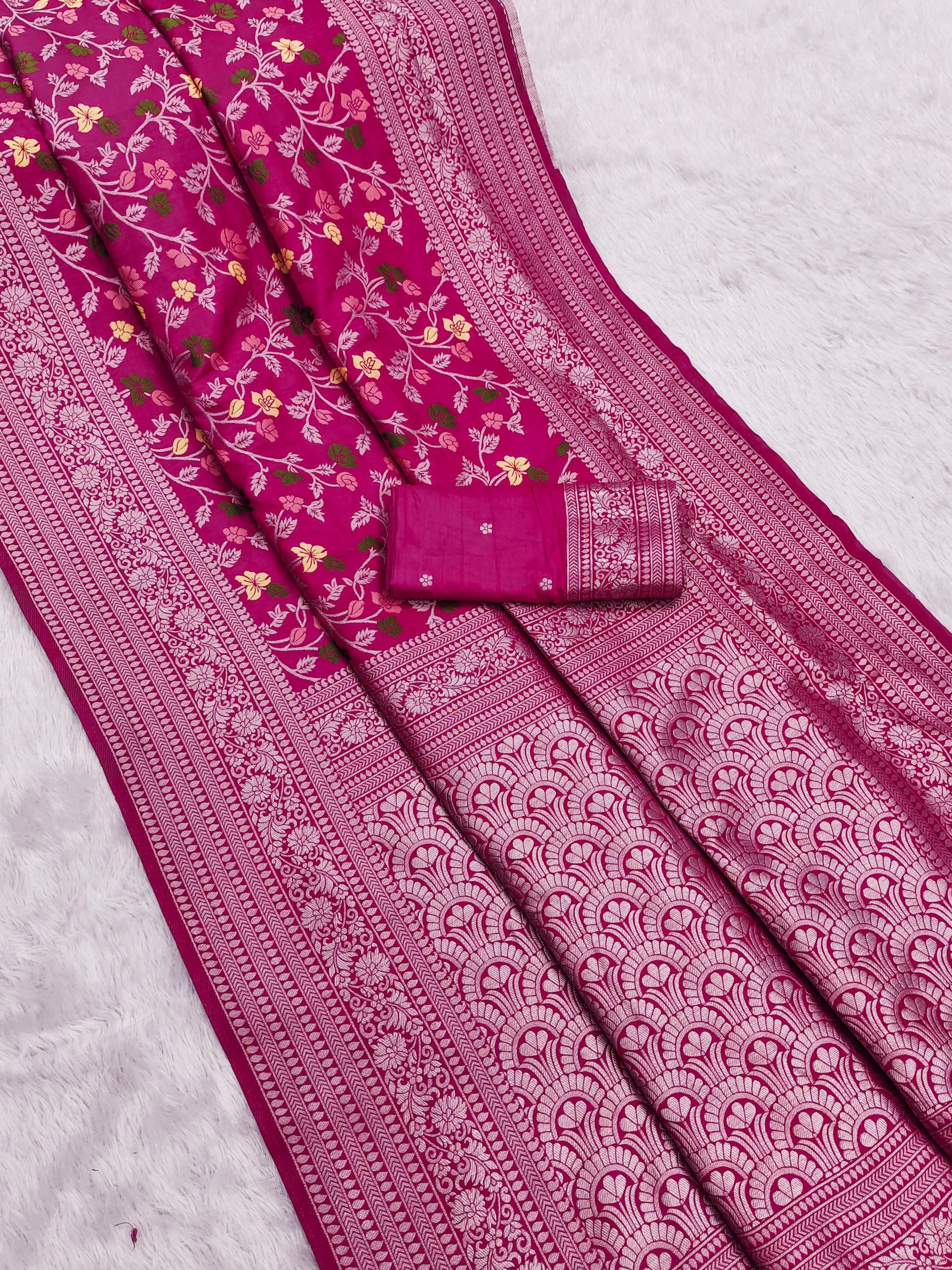 Rani Pink Khaddi Pashmina Zari Work Saree
