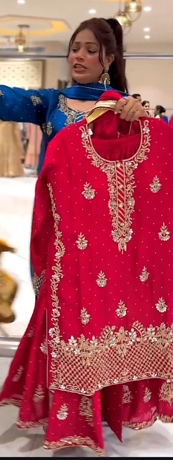 Sharara Palazzo : Heavy Chinon silk With 5 mm Sequence Embroidery Work.