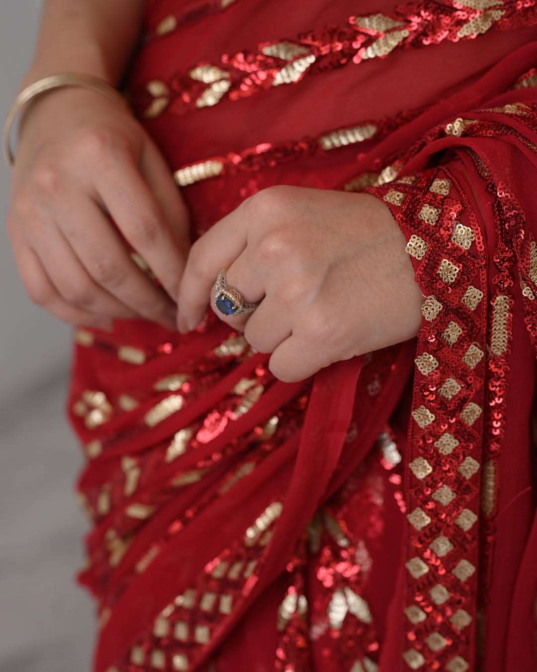 Saree Work- Embroidery Dual Sequence Work & Lace With Piping