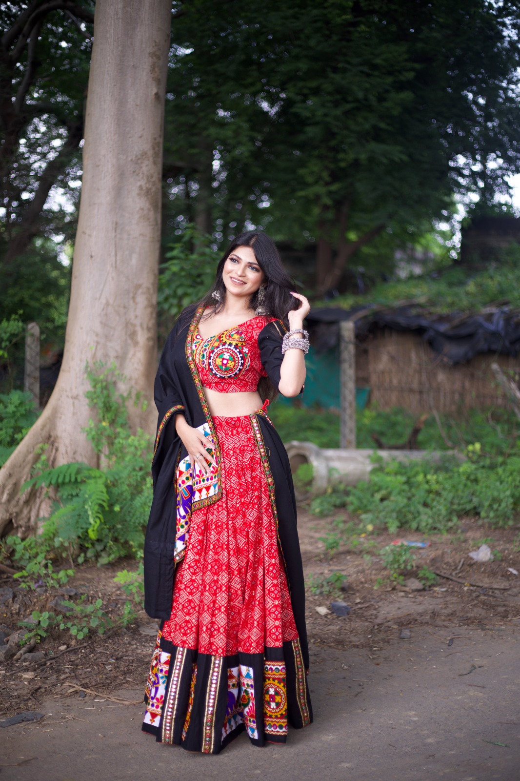 Red Pure Cotton With Gamthi Work Lehenga Choli