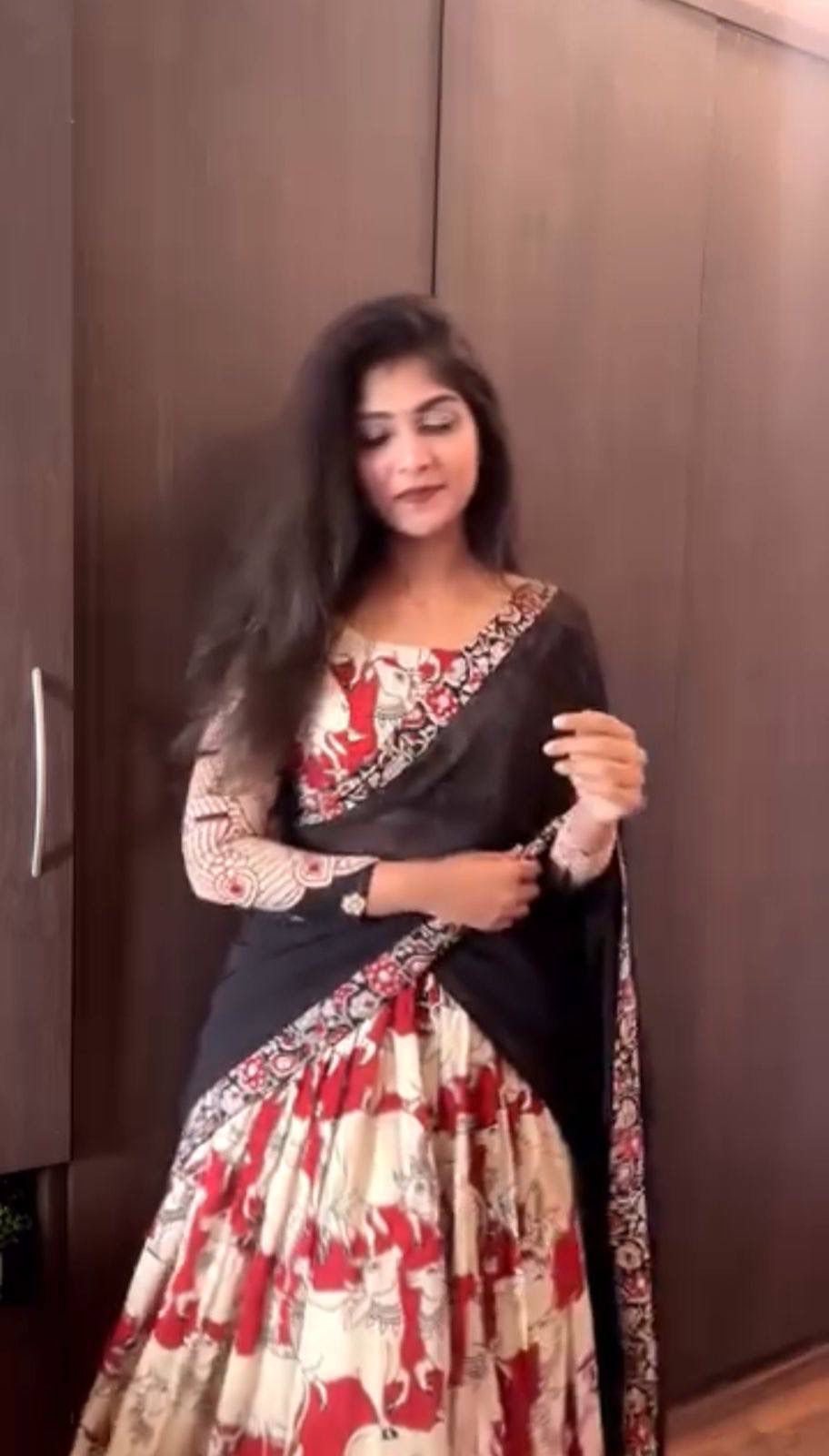 Red Rayon Cotton Kalamkari Print Lehenga Choli