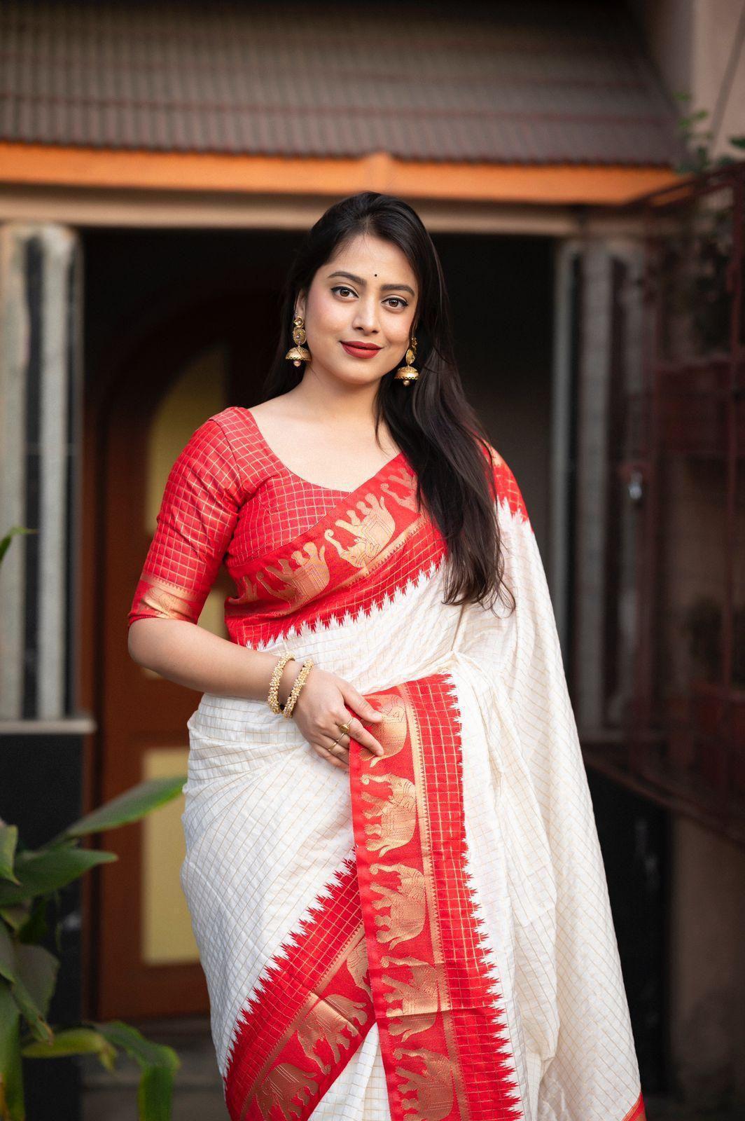 The saree exudes grace. The border work is the highlight. It feels very durable despite being elegant.