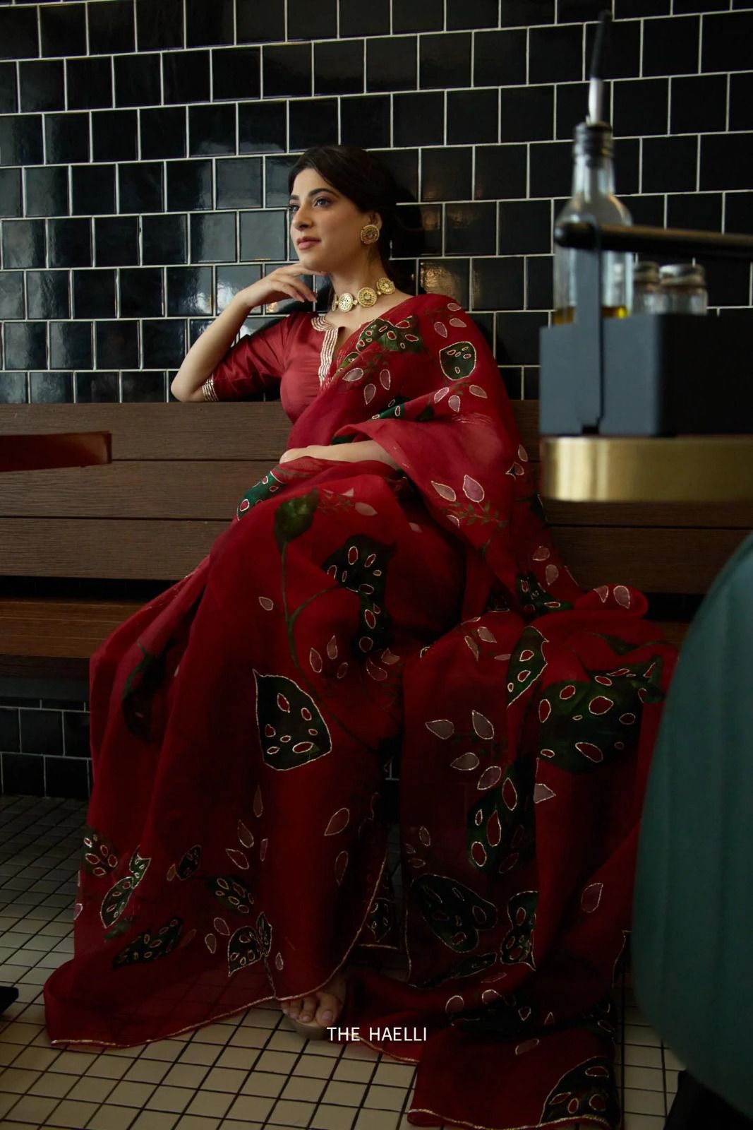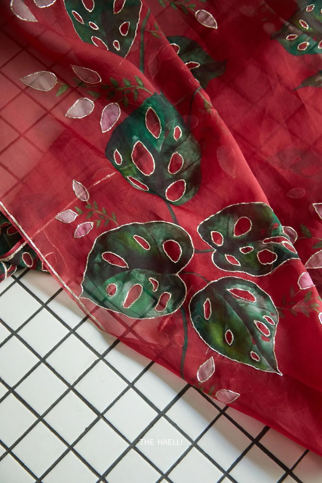 Red Soft Organza Zardosi Pitha Work Saree