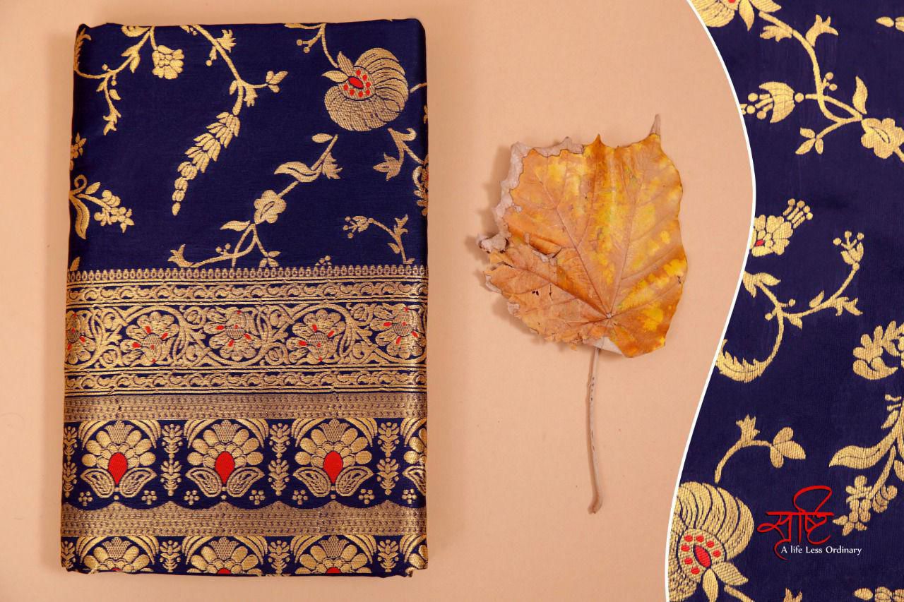 Royal Blue Banarsari Silk With Lace Border Saree