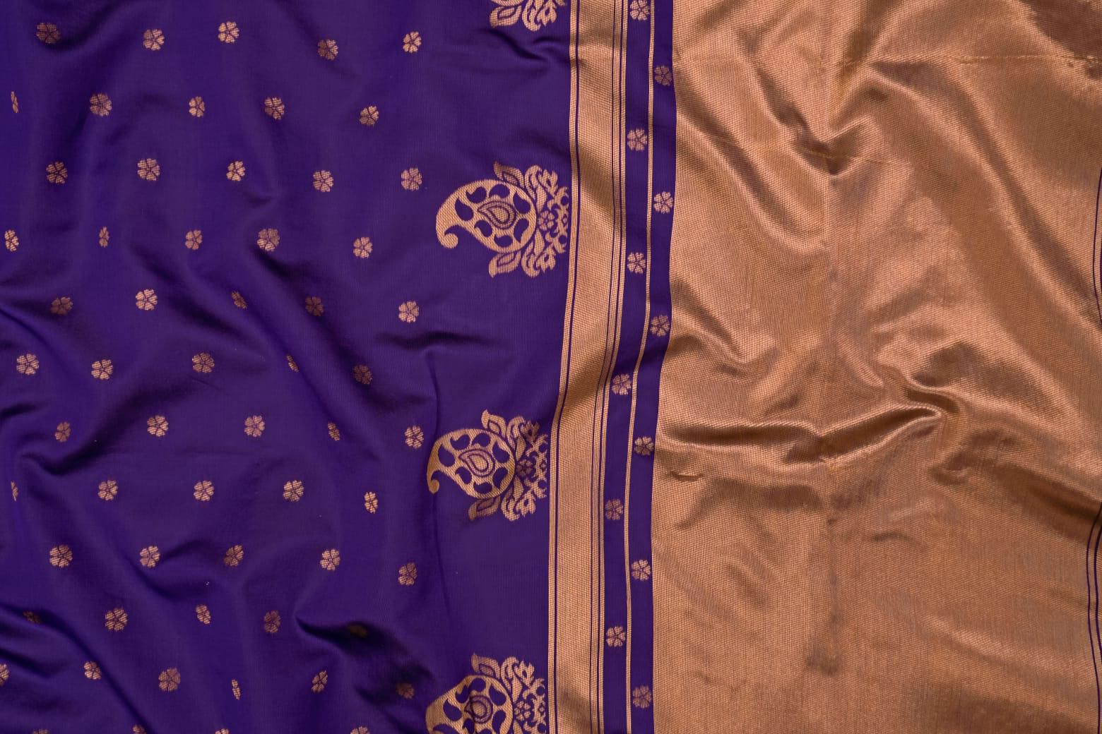 Royal Blue Soft Lichi Silk With Lace Work Saree