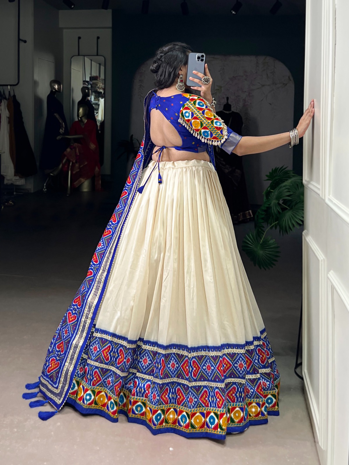 Lehenga Work : Patola Print With Foil Work And Real Mirror Gamthi Work With Lace Touch Up