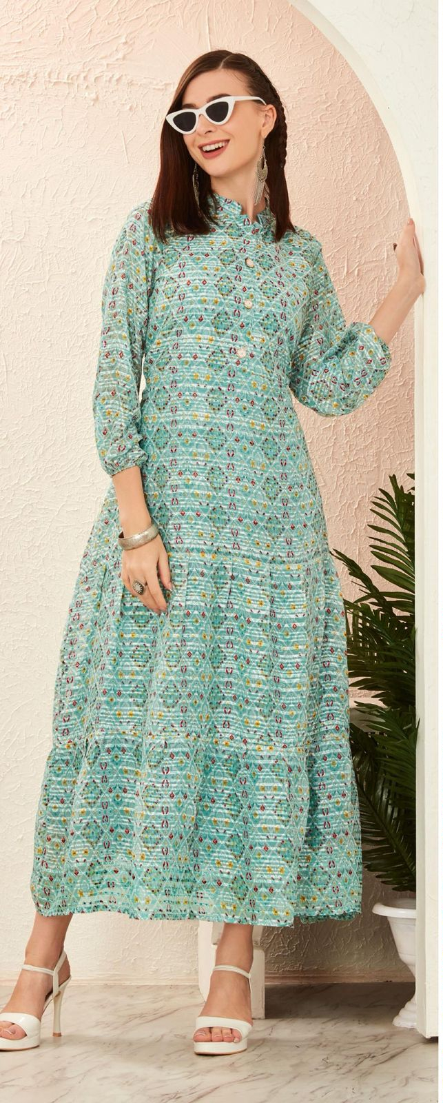 INLI BLOSSOM 2.0 Sea Green Georgette print Gown Perfect for Wedding, Party, Ganesh Chaturthi, Bridal Wear, Durga Puja . Get it for ₹1499. Delivery 4-6 Days | Bollywood Gowns, Creative Gowns, Designer Gowns, Embroidered Gowns, Gowns, Party Wear Gowns