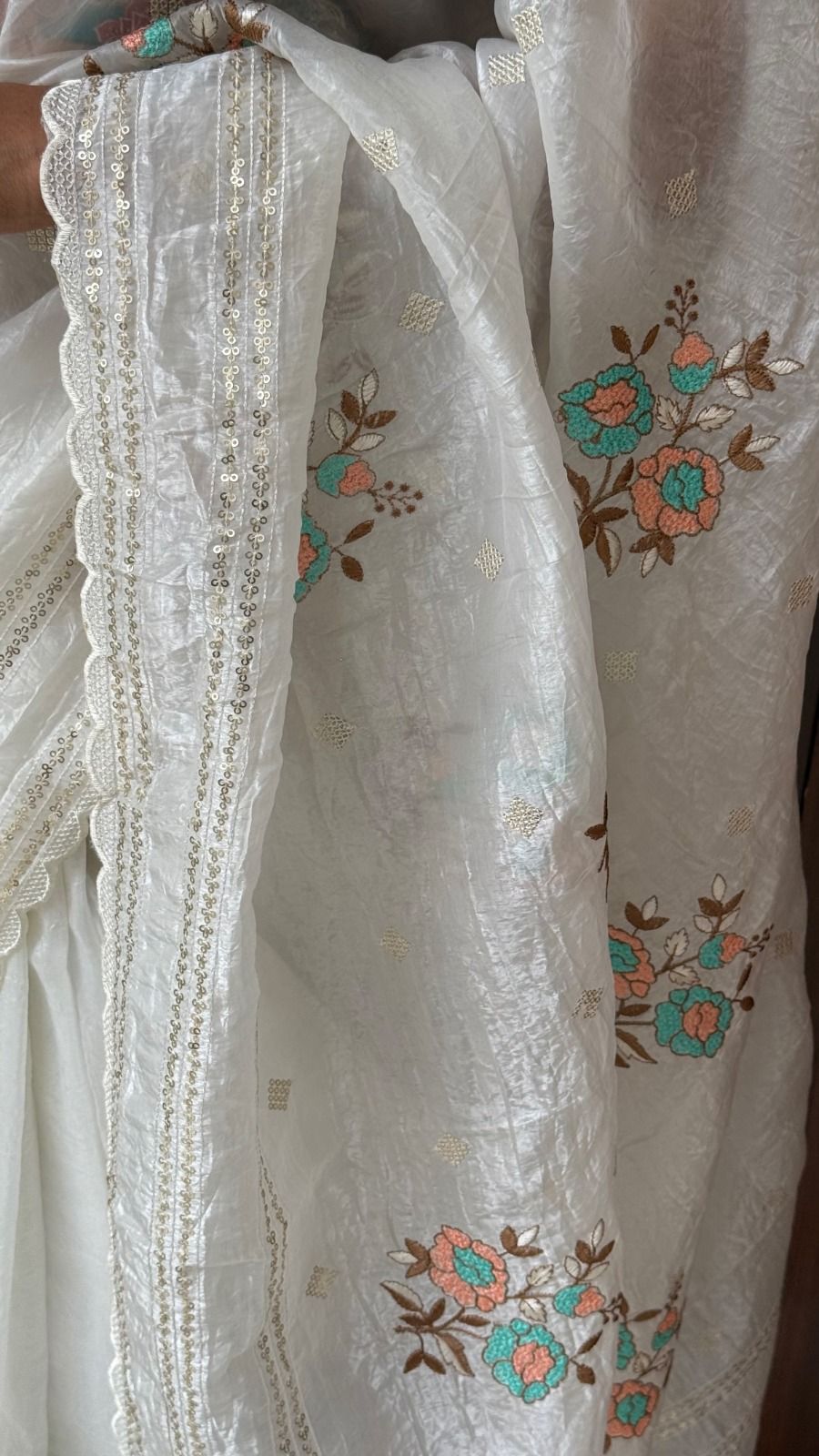 Saree Work : Self Sequins Weaving Pattern All Over The Saree With Scallop Border