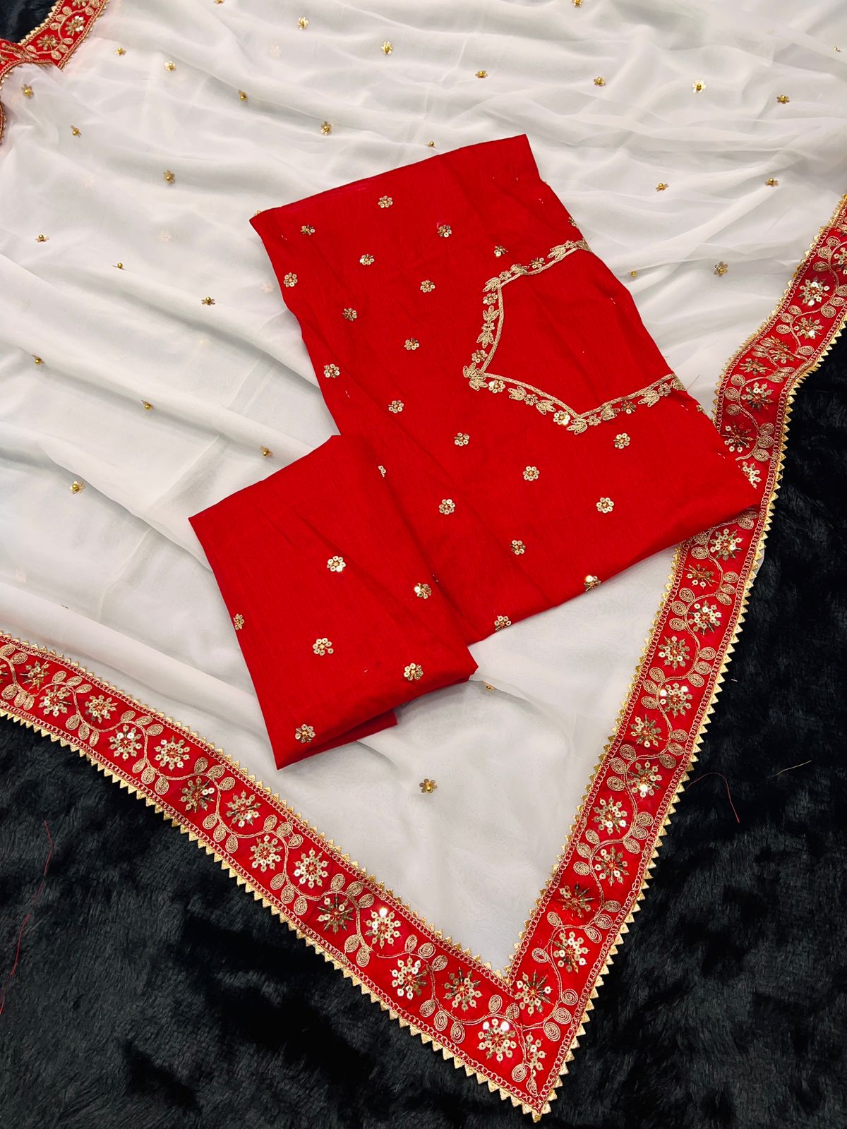 Saree Work : Fancy Dori Thread & Sequnce With Handcrafted Butti A Moti Work