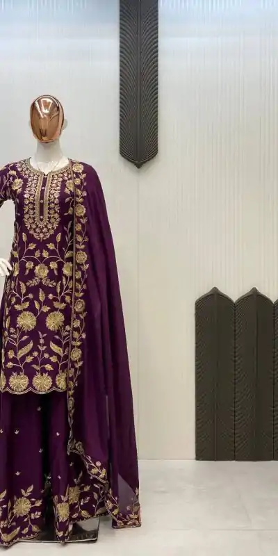 Wine Chinon With Lace Embroidery Work Salwar Suit