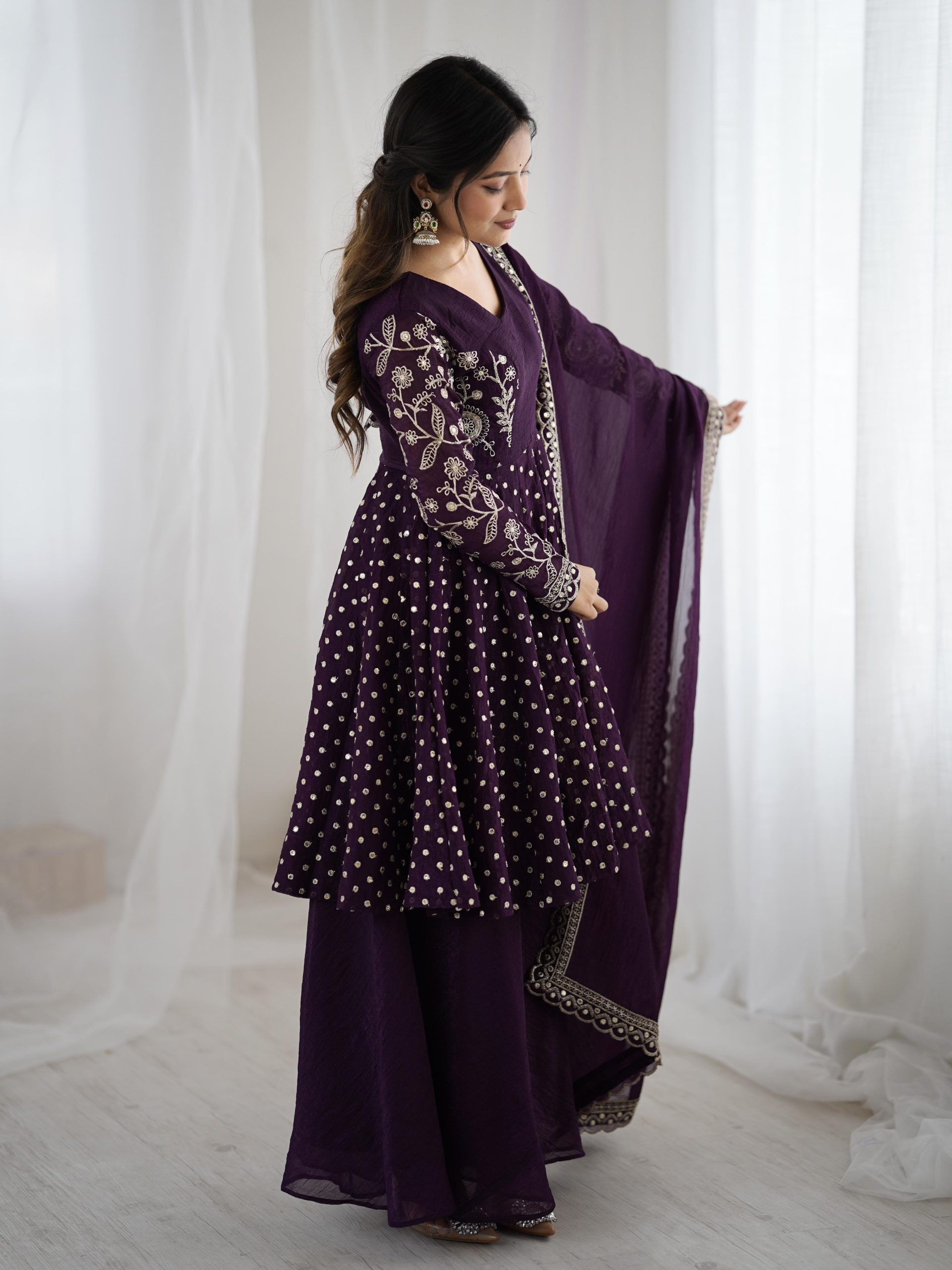 Purple Georgette Badhani Print Embroidery Work Salwar Suit