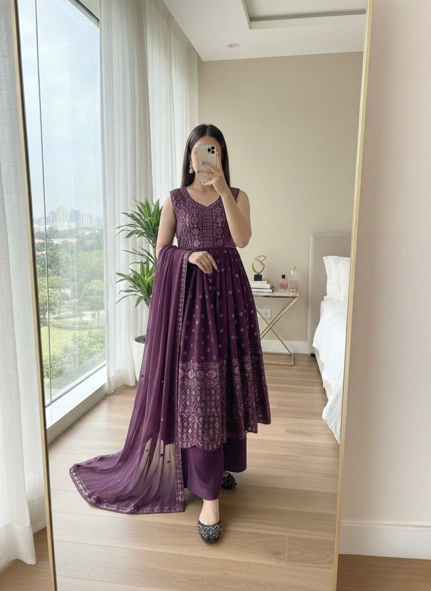 Wine Georgette With Sequence Work Salwar Suit