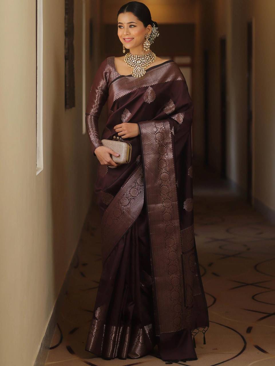 Wine Soft Lichi Silk Rich Pallu Border Saree