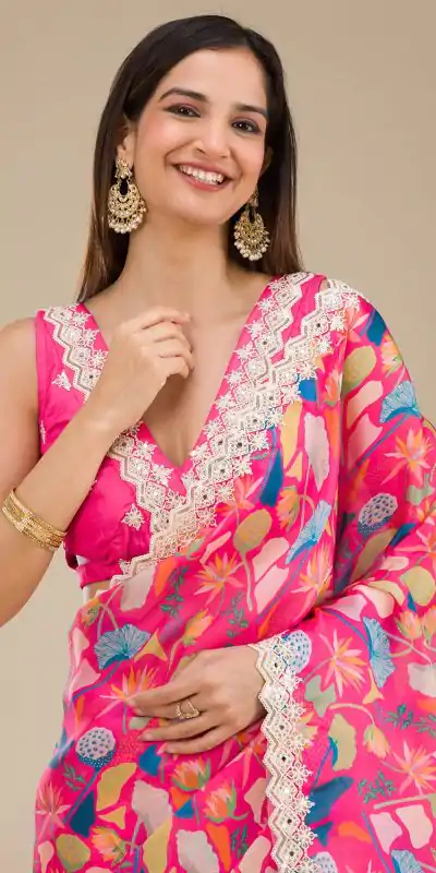 | Fabrics | Saree Fabrics :Georgette Saree Work : Digital Prints & Embroidery Codding Sequins Work Saree Patten : Fancy Cut Work Border Saree : 5.50Mrt Blouse Work : Mono Banglory Silk Blouse Work :Embroidery Codding & Sequins Work Blouse Un stitched 0.80Mtr |