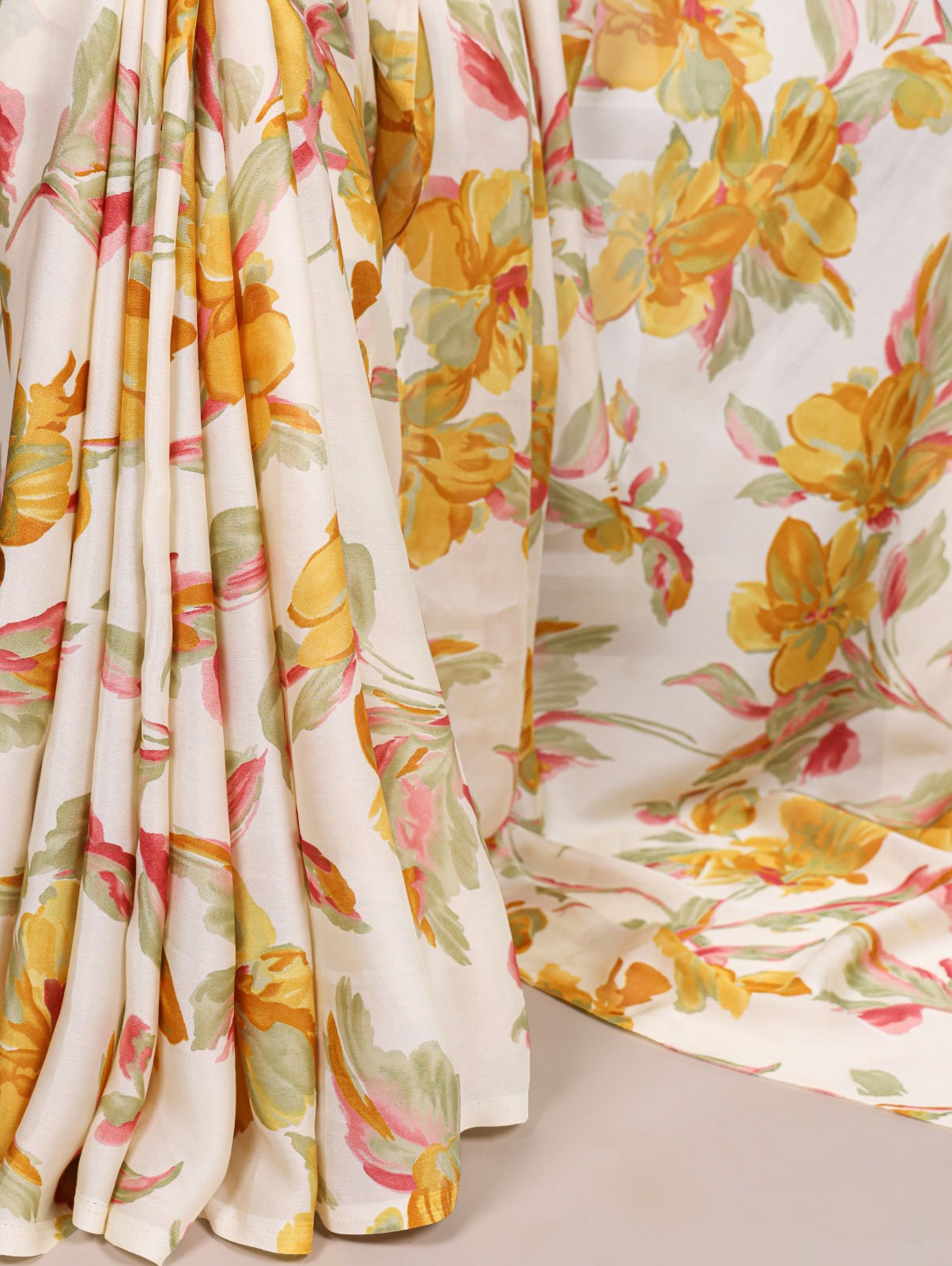 Magical Cream Color Georgette Embroidery Sequence Saree